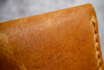 Each piece is cut by hand and saddle-stitched using tear-resistant Vinymo MBT thread. The edges are burnished smooth and sealed with our signature natural wax balm for durability and touch.